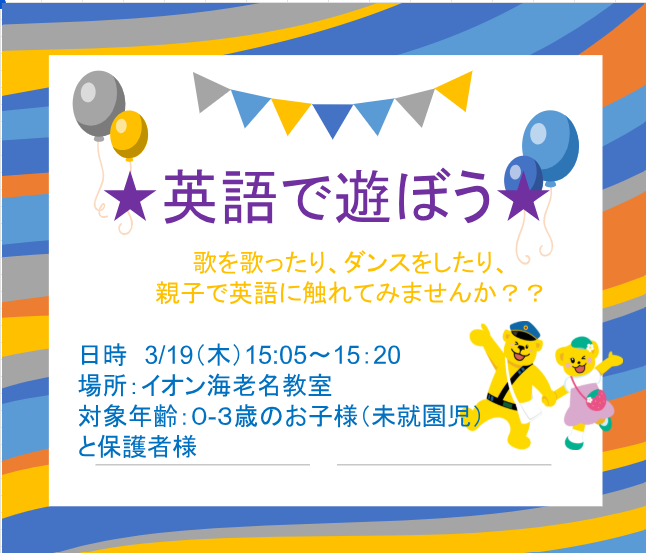 親子 40分① 0~3歳 15:05~15:45