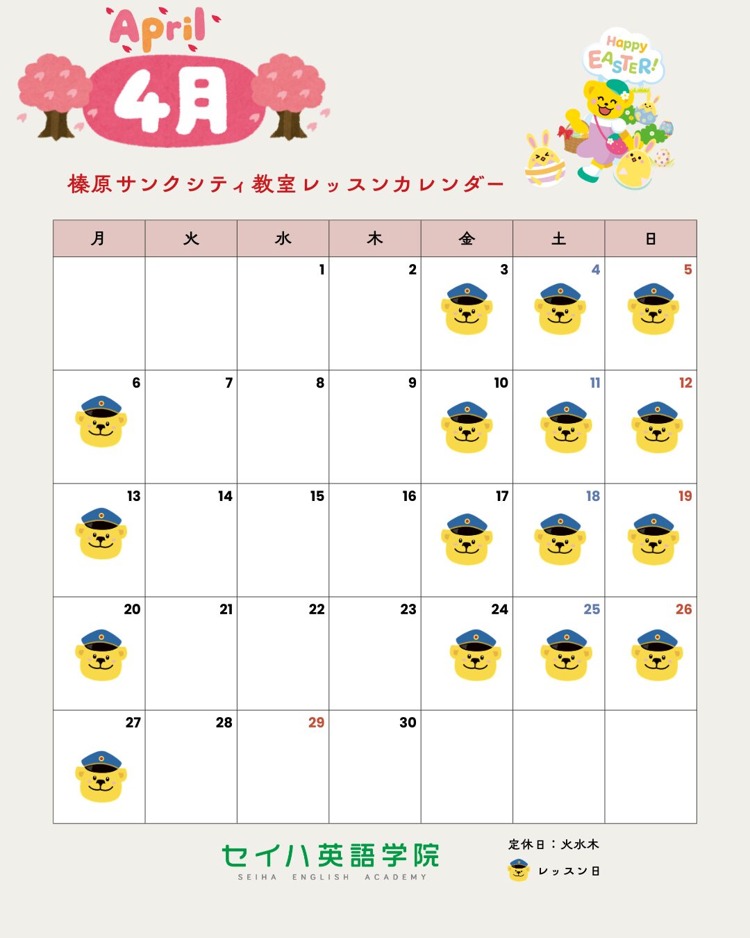 ※ 予告なく受付時間を変更する場合やスクールホリデー等があります。ご来校前にお電話にてご確認ください。
