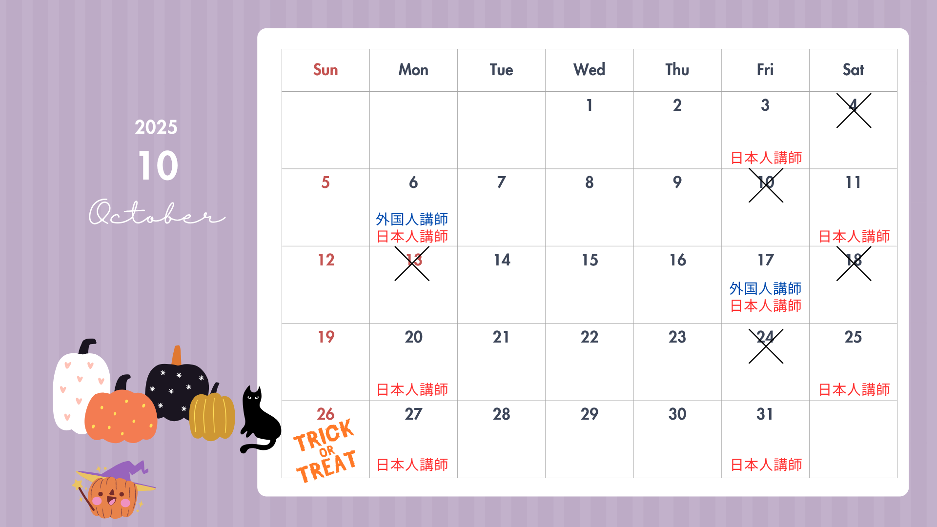 ※ 予告なく受付時間を変更する場合やスクールホリデー等があります。ご来校前にお電話にてご確認ください。