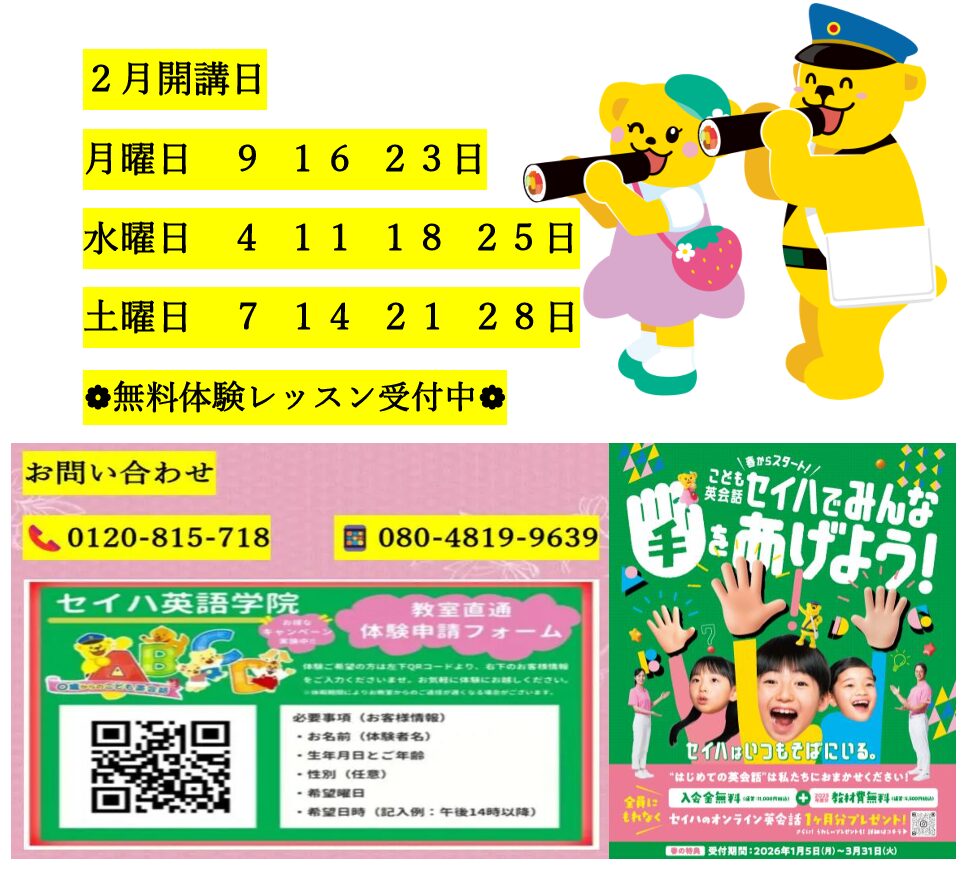 ※教室により内容が異なる場合がございます。詳しくは各教室、またはフリーダイヤルまでお問い合わせください。
