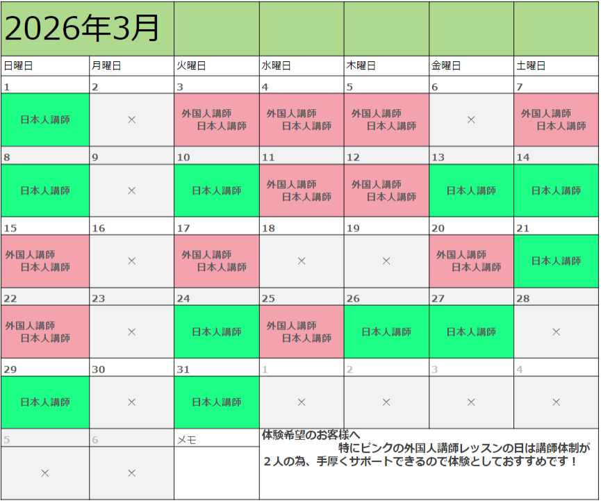 ※ 予告なく受付時間を変更する場合やスクールホリデー等があります。ご来校前にお電話にてご確認ください。