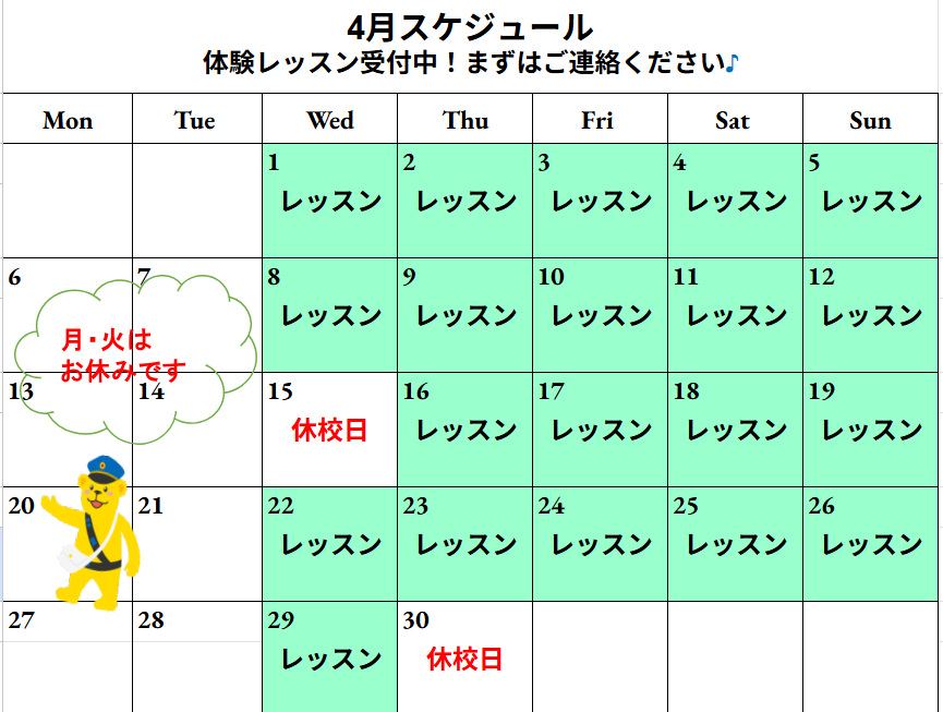 ※レッスン中は、ご対応できないことがございます。ご了承ください。