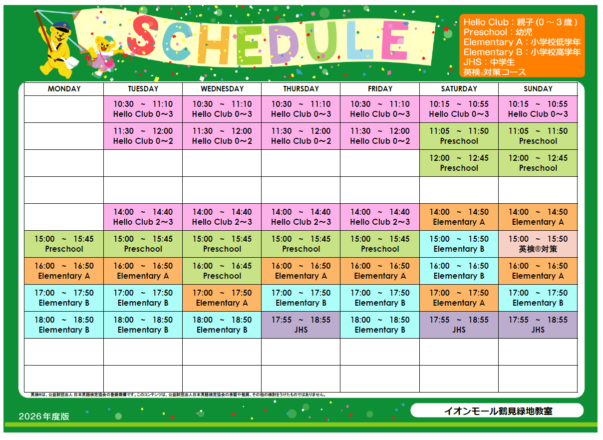 ※ 予告なく受付時間を変更する場合やスクールホリデー等があります。ご来校前にお電話にてご確認ください。