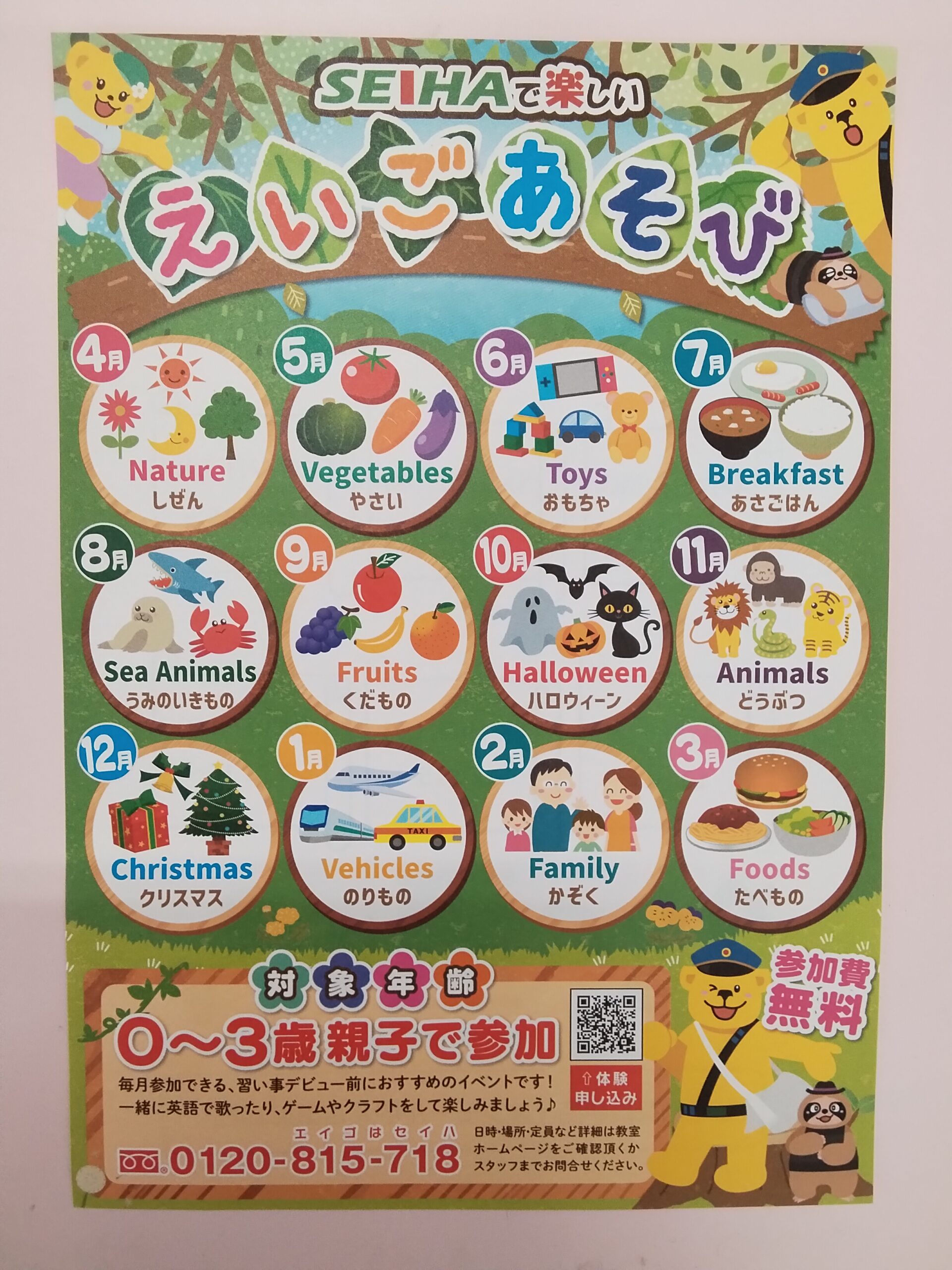 音楽やリズム、ゲームを通し、楽しく体を動かして英語を覚えます。言語の区別がないこの時期だからこそ、たくさん聞いて音の違いを聞き分ける力をつけます。
