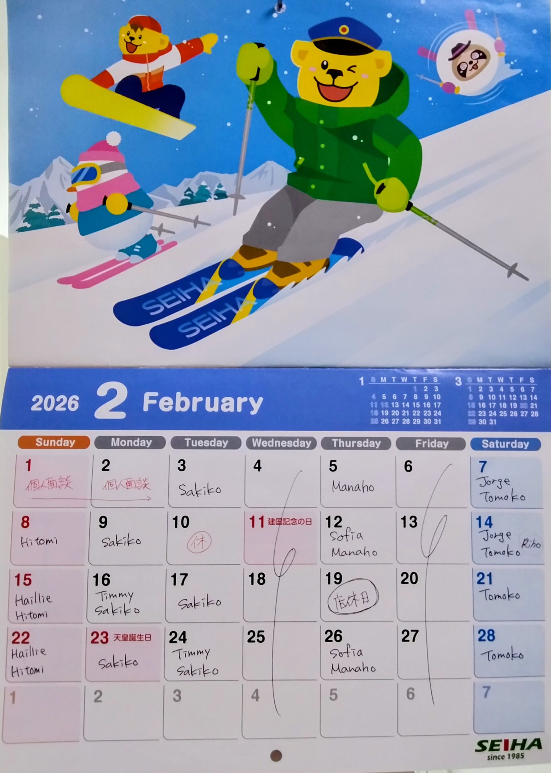 | 月曜日 | 火曜日 | 水曜日 | 木曜日 | 金曜日 | 土曜日 | 日曜日 |