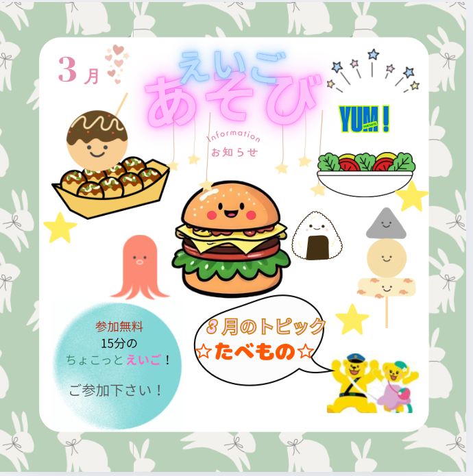 音楽やリズム、ゲームを通し、楽しく体を動かして英語を覚えます。言語の区別がないこの時期だからこそ、たくさん聞いて音の違いを聞き分ける力をつけます。