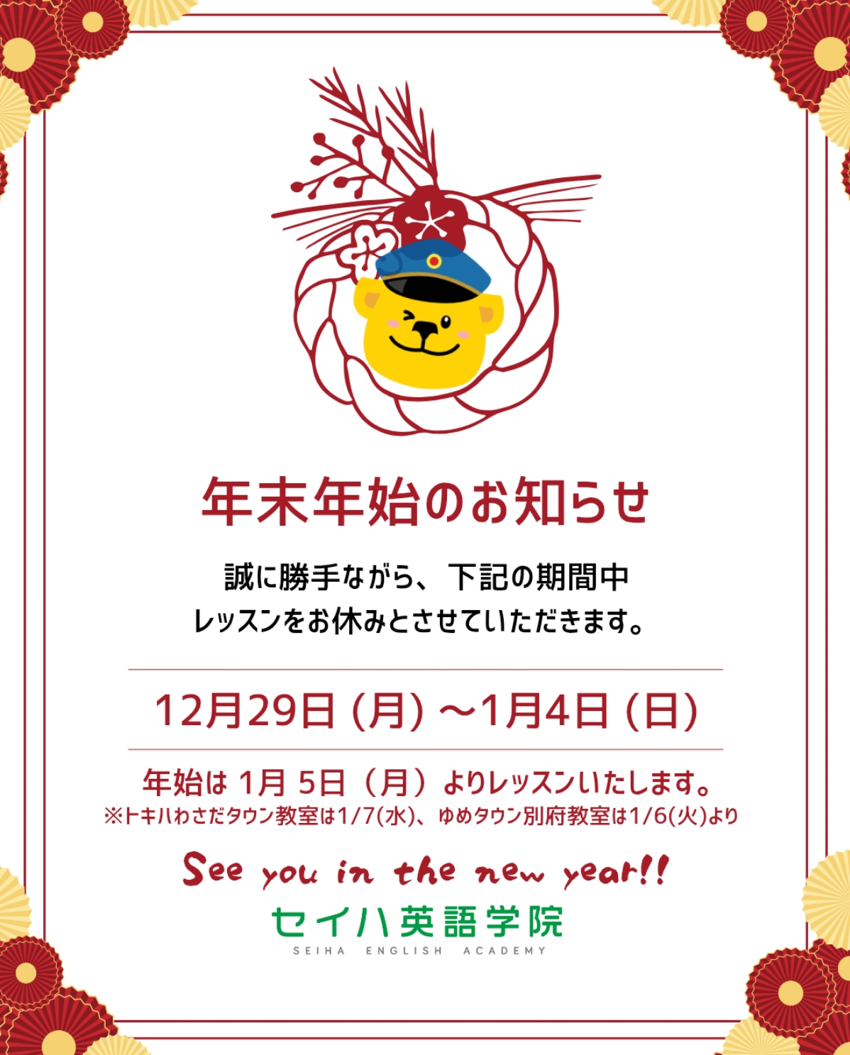 ※ 予告なく受付時間を変更する場合やスクールホリデー等があります。ご来校前にお電話にてご確認ください。