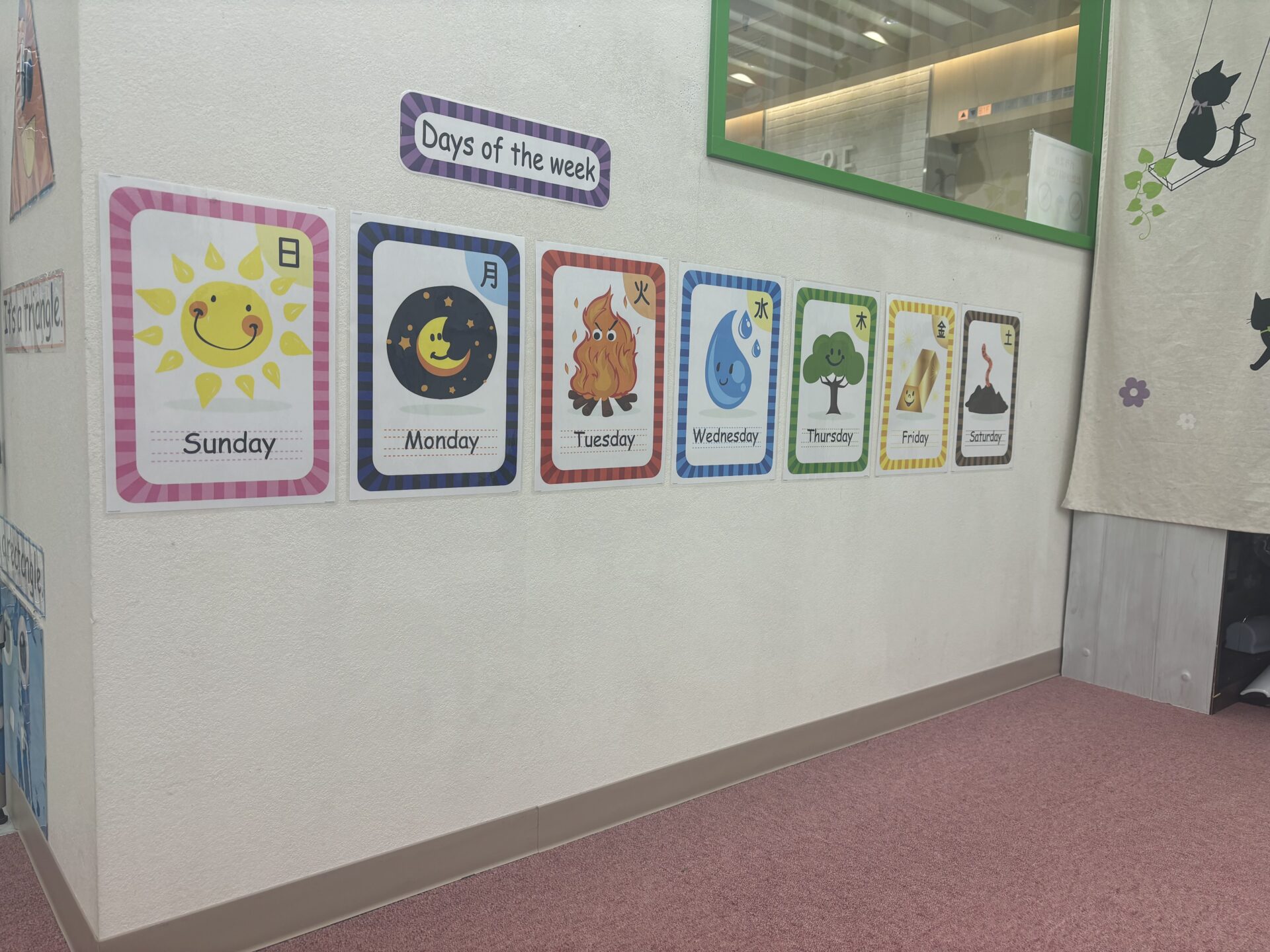 音楽やリズム、ゲームを通し、楽しく体を動かして英語を覚えます。言語の区別がないこの時期だからこそ、たくさん聞いて音の違いを聞き分ける力をつけます。