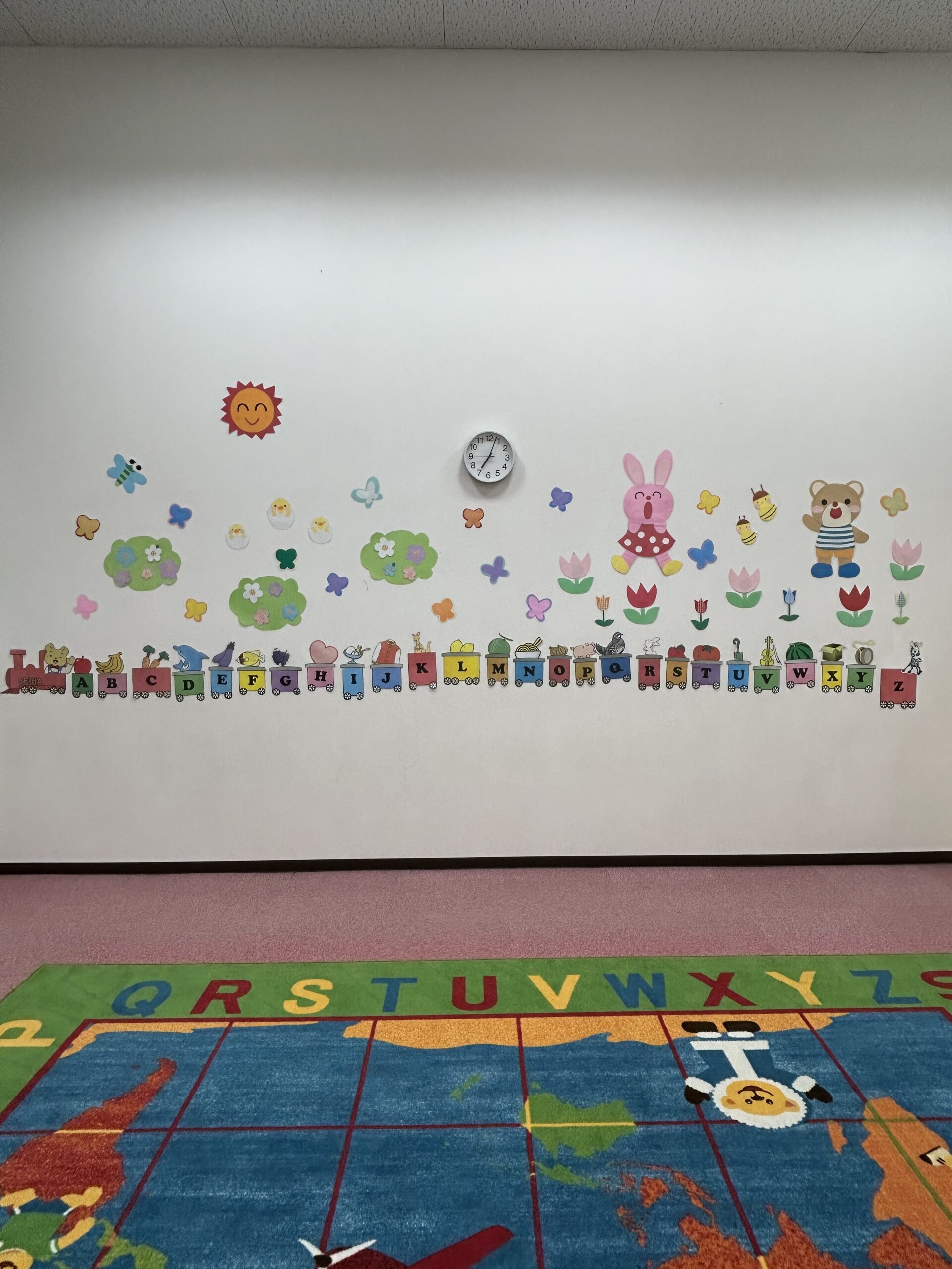 音楽やリズム、ゲームを通し、楽しく体を動かして英語を覚えます。言語の区別がないこの時期だからこそ、たくさん聞いて音の違いを聞き分ける力をつけます。