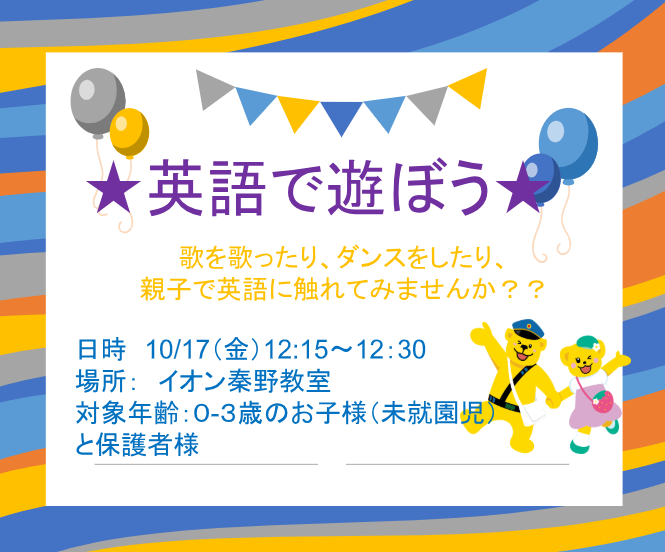 音楽やリズム、ゲームを通し、楽しく体を動かして英語を覚えます。言語の区別がないこの時期だからこそ、たくさん聞いて音の違いを聞き分ける力をつけます。
