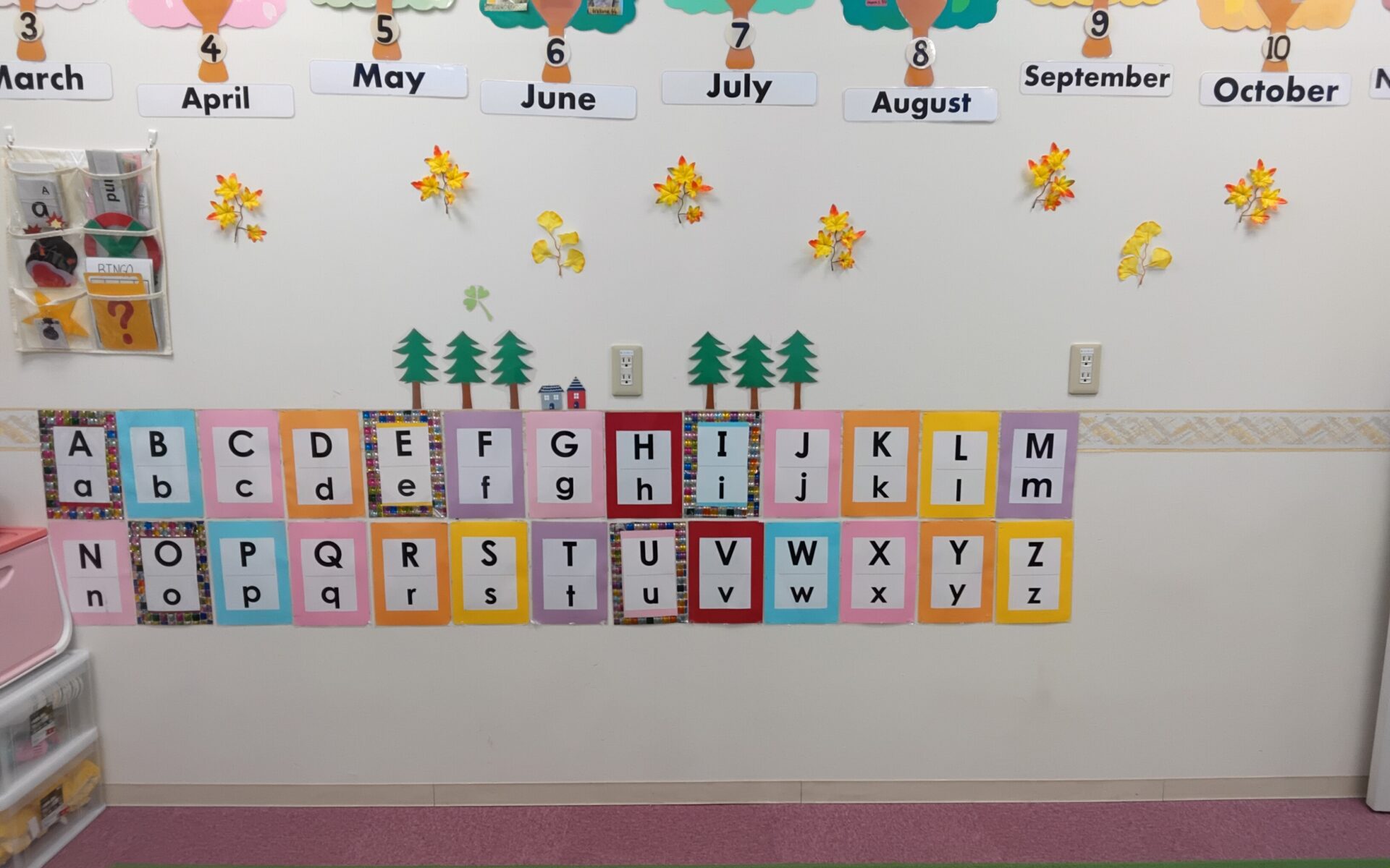 音楽やリズム、ゲームを通し、楽しく体を動かして英語を覚えます。言語の区別がないこの時期だからこそ、たくさん聞いて音の違いを聞き分ける力をつけます。