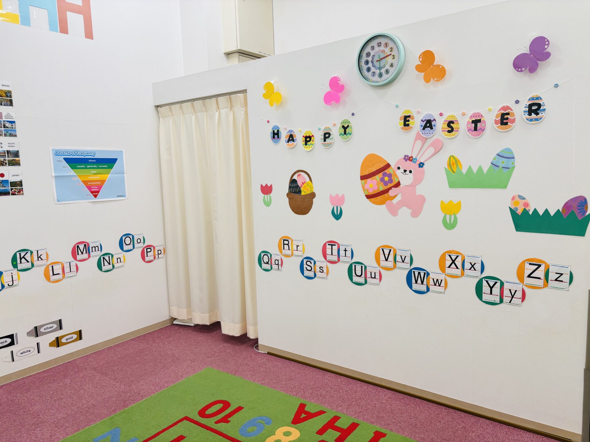 音楽やリズム、ゲームを通し、楽しく体を動かして英語を覚えます。言語の区別がないこの時期だからこそ、たくさん聞いて音の違いを聞き分ける力をつけます。