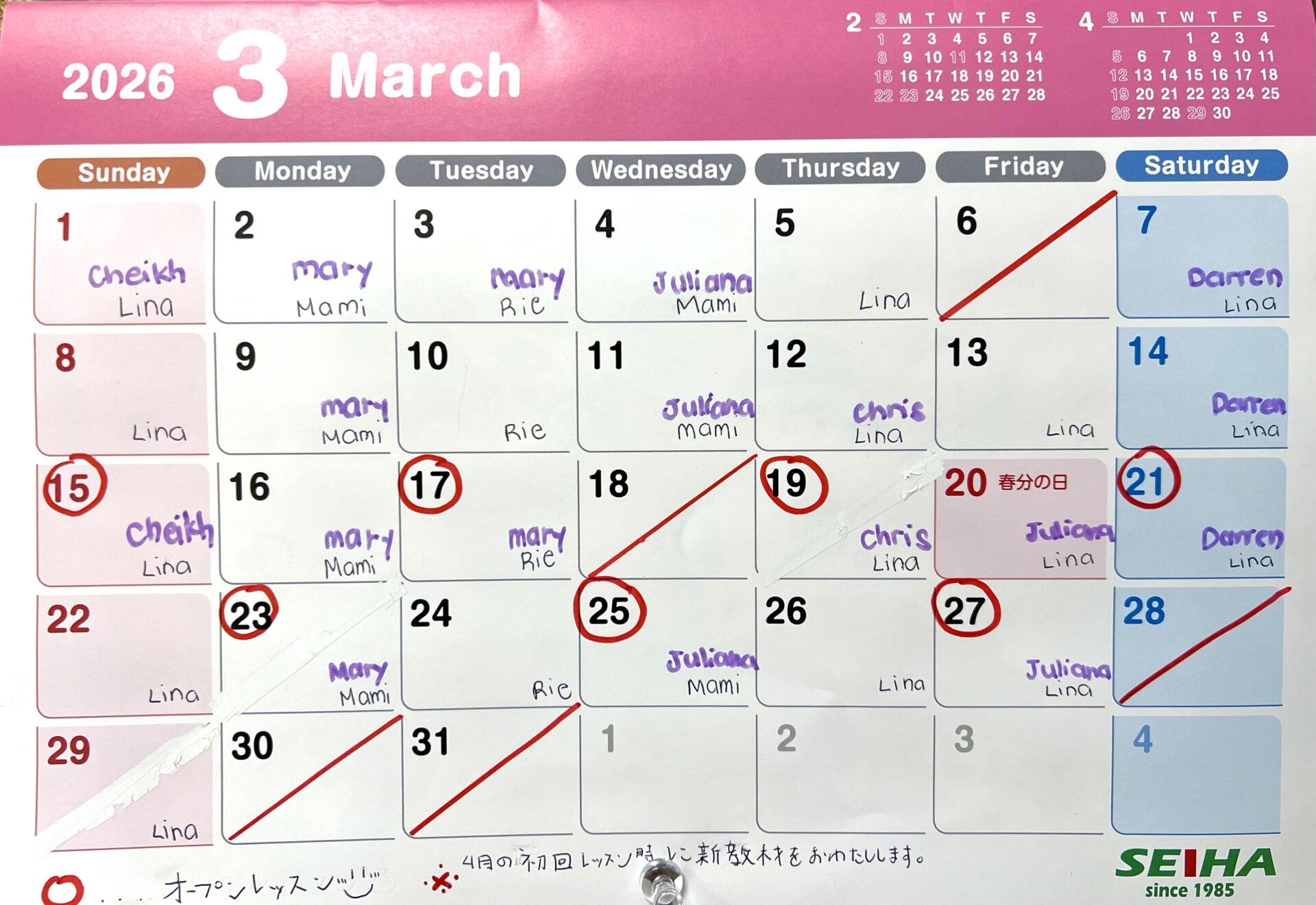 ※レッスン中は、ご対応できないことがございます。ご了承ください。