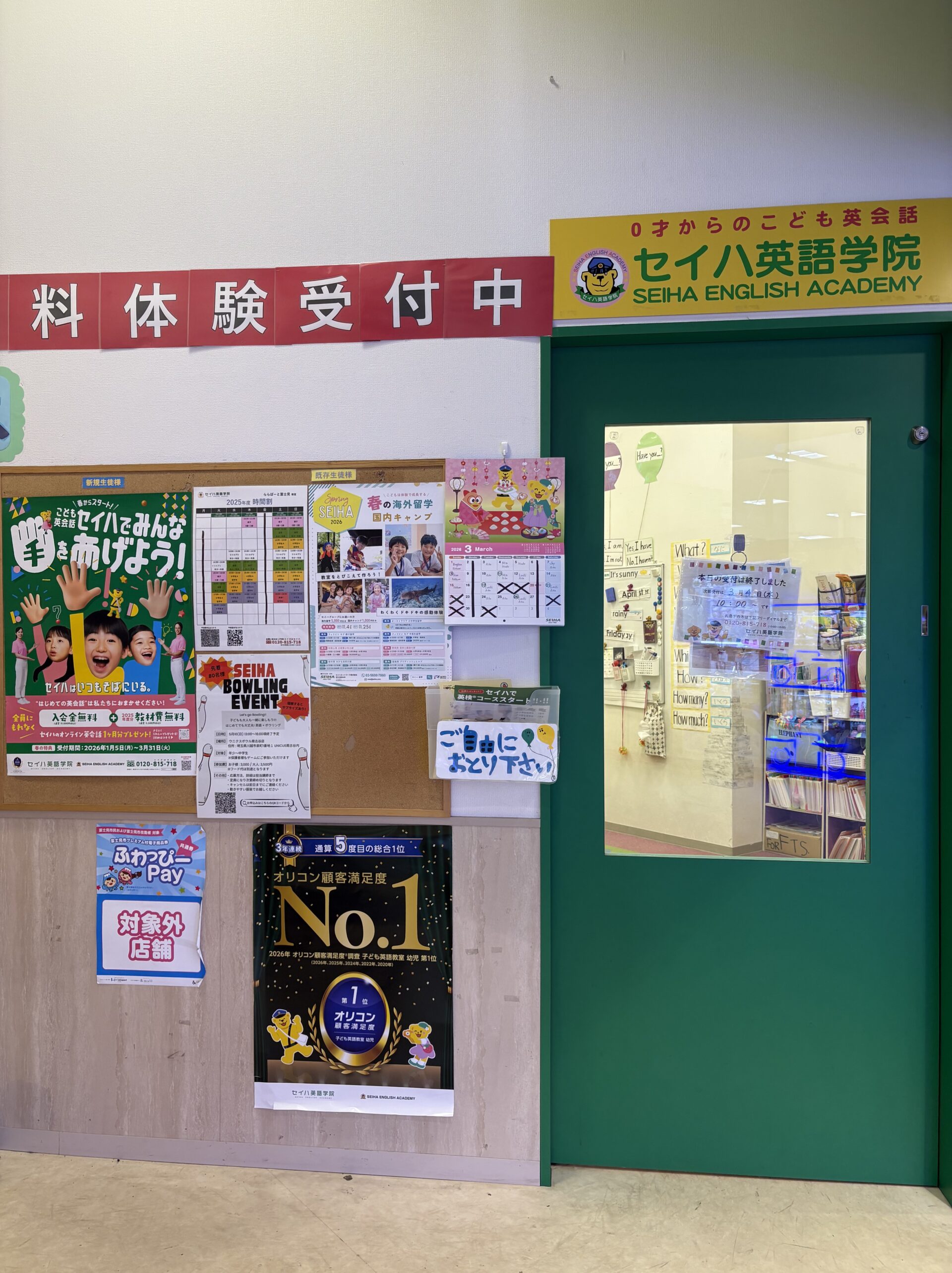 ※ 予告なく受付時間を変更する場合やスクールホリデー等があります。ご来校前にお電話にてご確認ください。