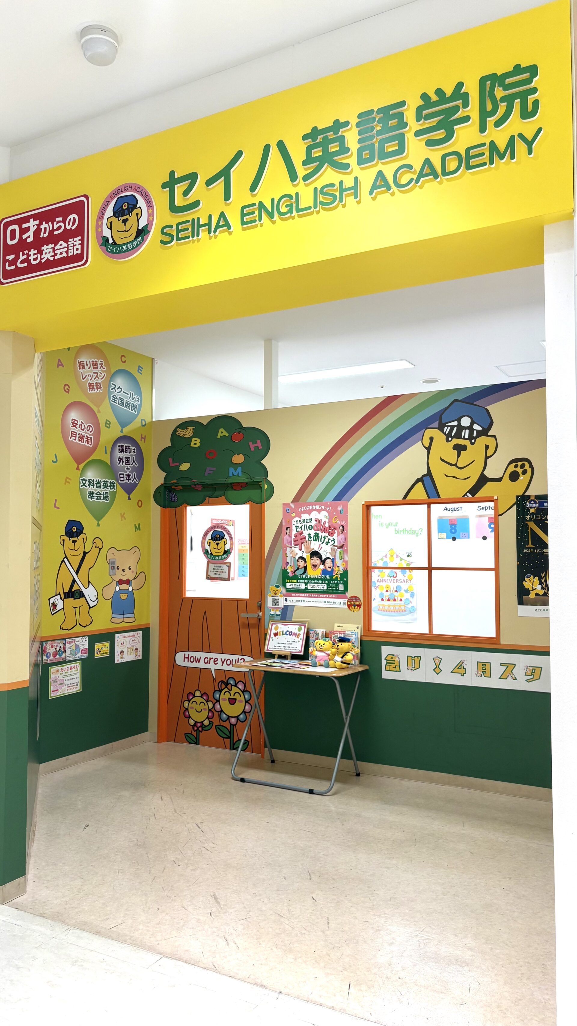 セイハ英語学院ラフレ初生教室はラフレ初生ショッピングセンターの地下1階エレベーター横にございます!
