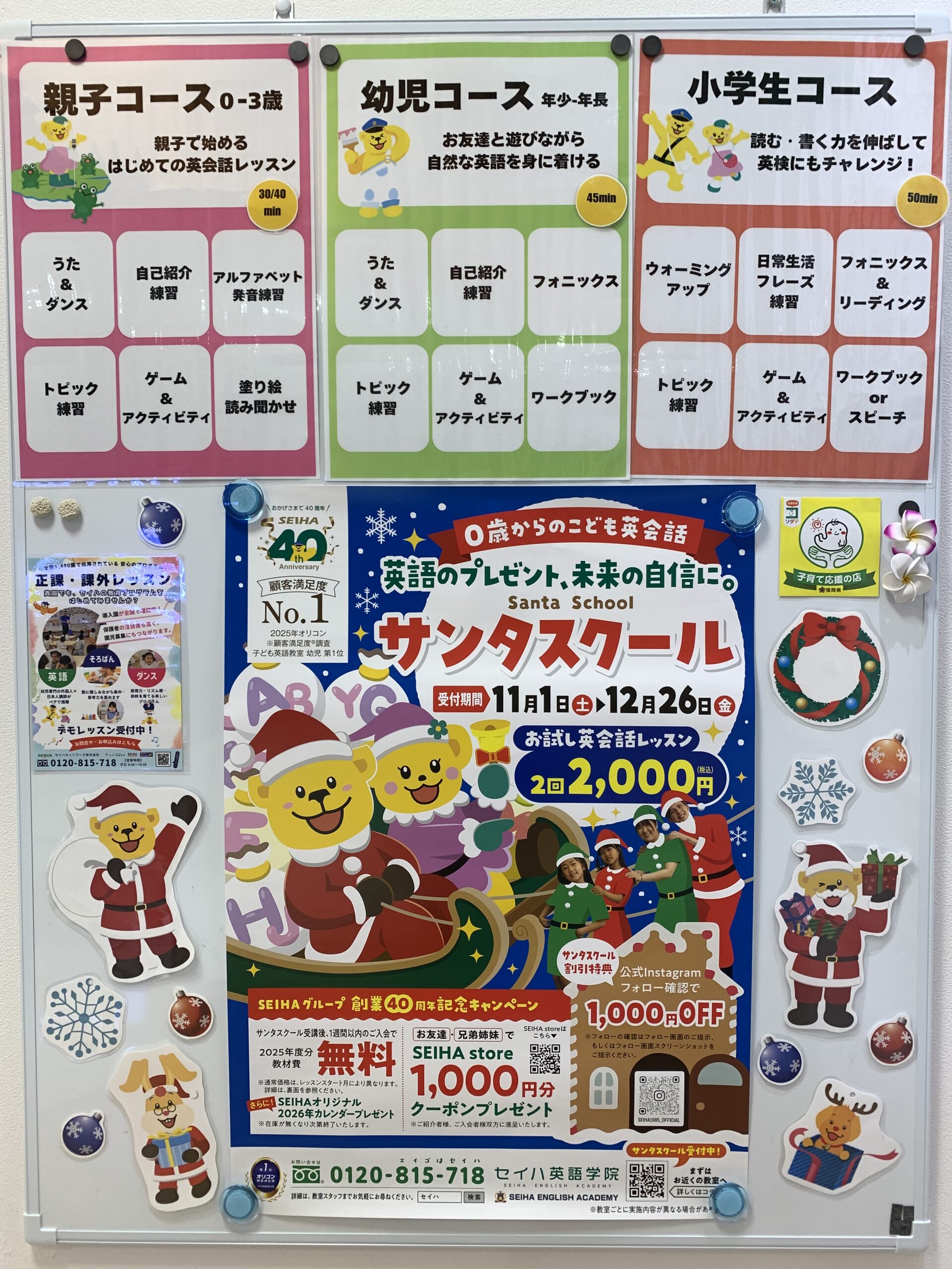 ※ 予告なく受付時間を変更する場合やスクールホリデー等があります。ご来校前にお電話にてご確認ください。