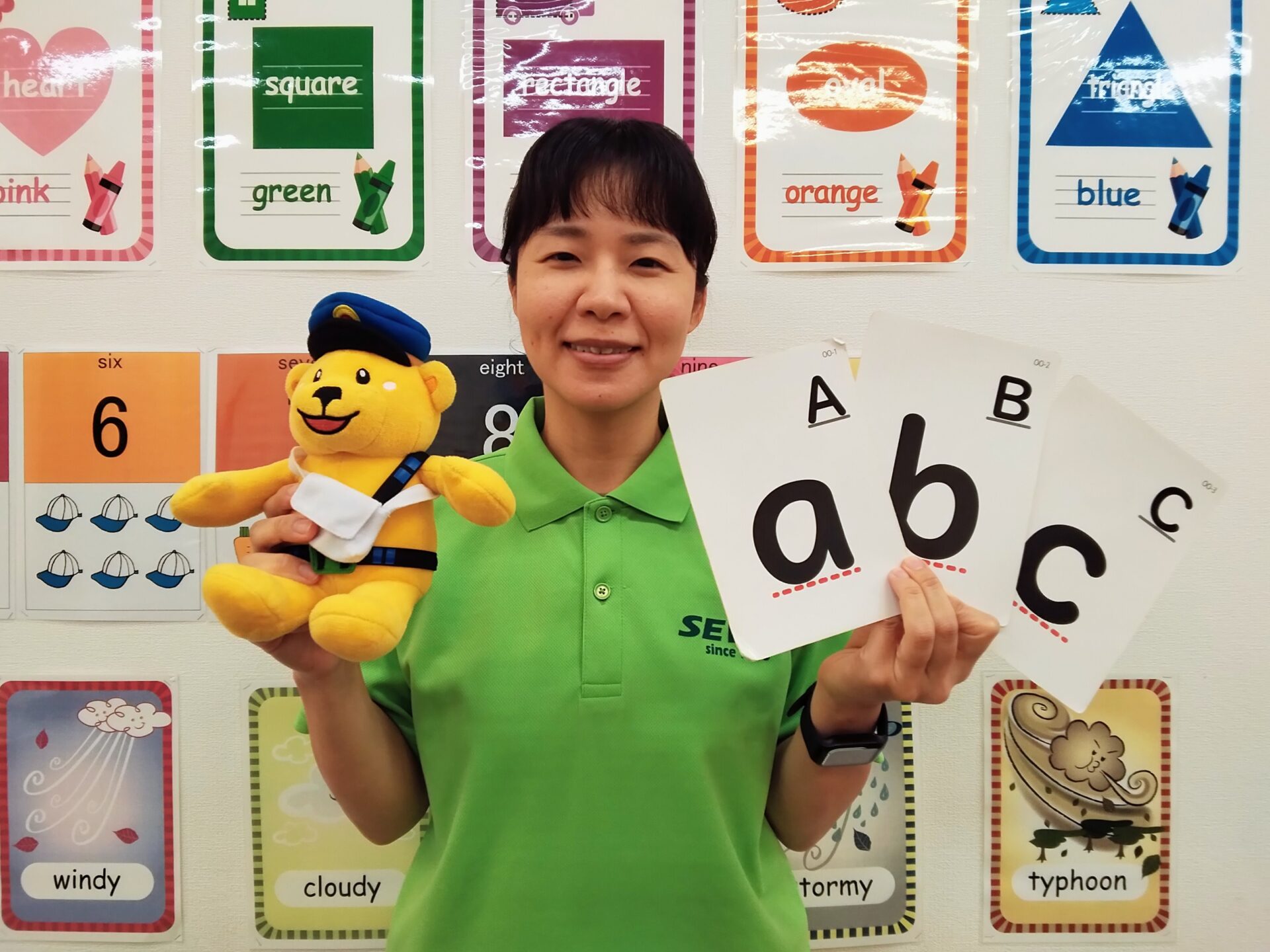 音楽やリズム、ゲームを通し、楽しく体を動かして英語を覚えます。言語の区別がないこの時期だからこそ、たくさん聞いて音の違いを聞き分ける力をつけます。