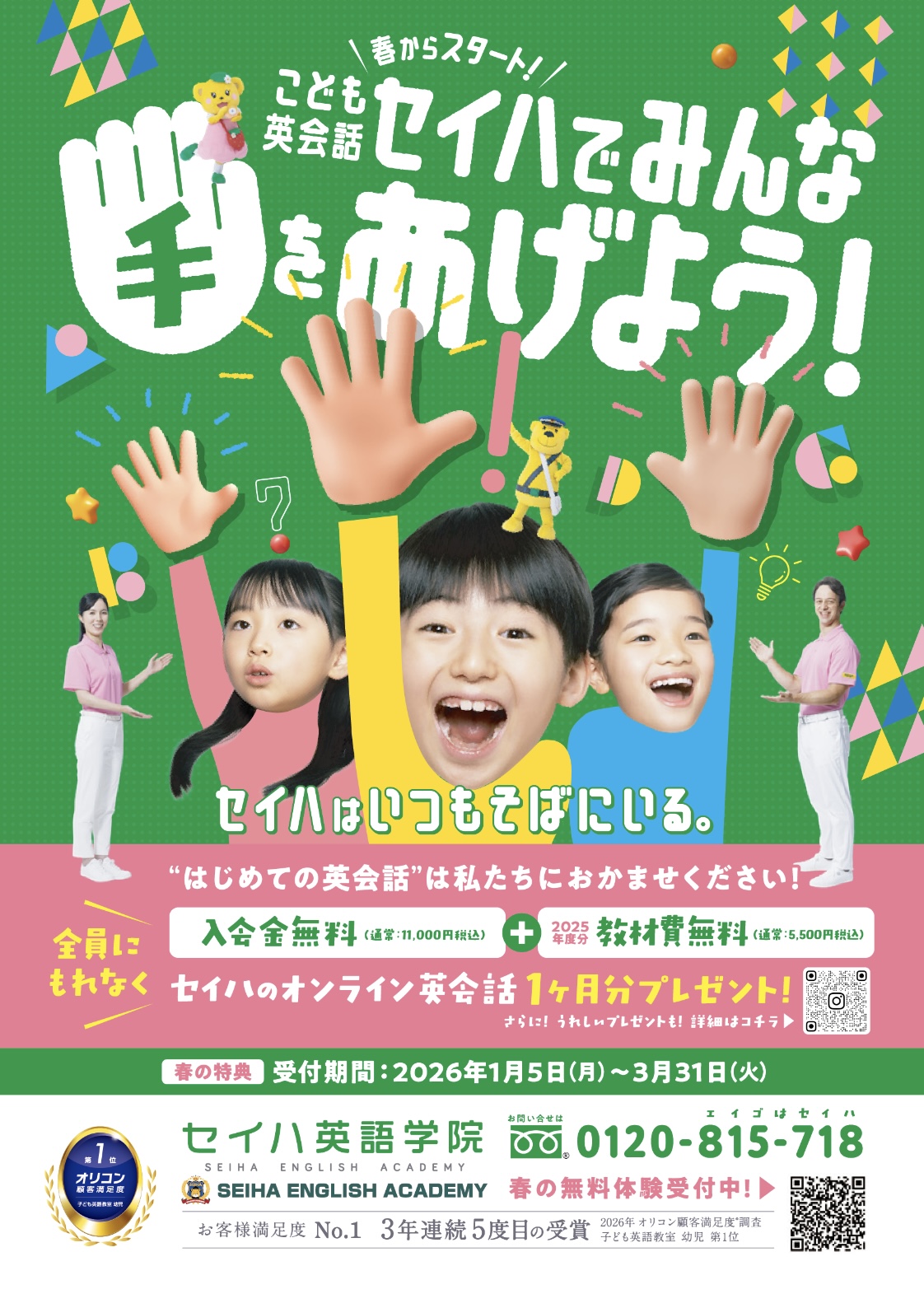 ※ 予告なく受付時間を変更する場合やスクールホリデー等があります。ご来校前にお電話にてご確認ください。