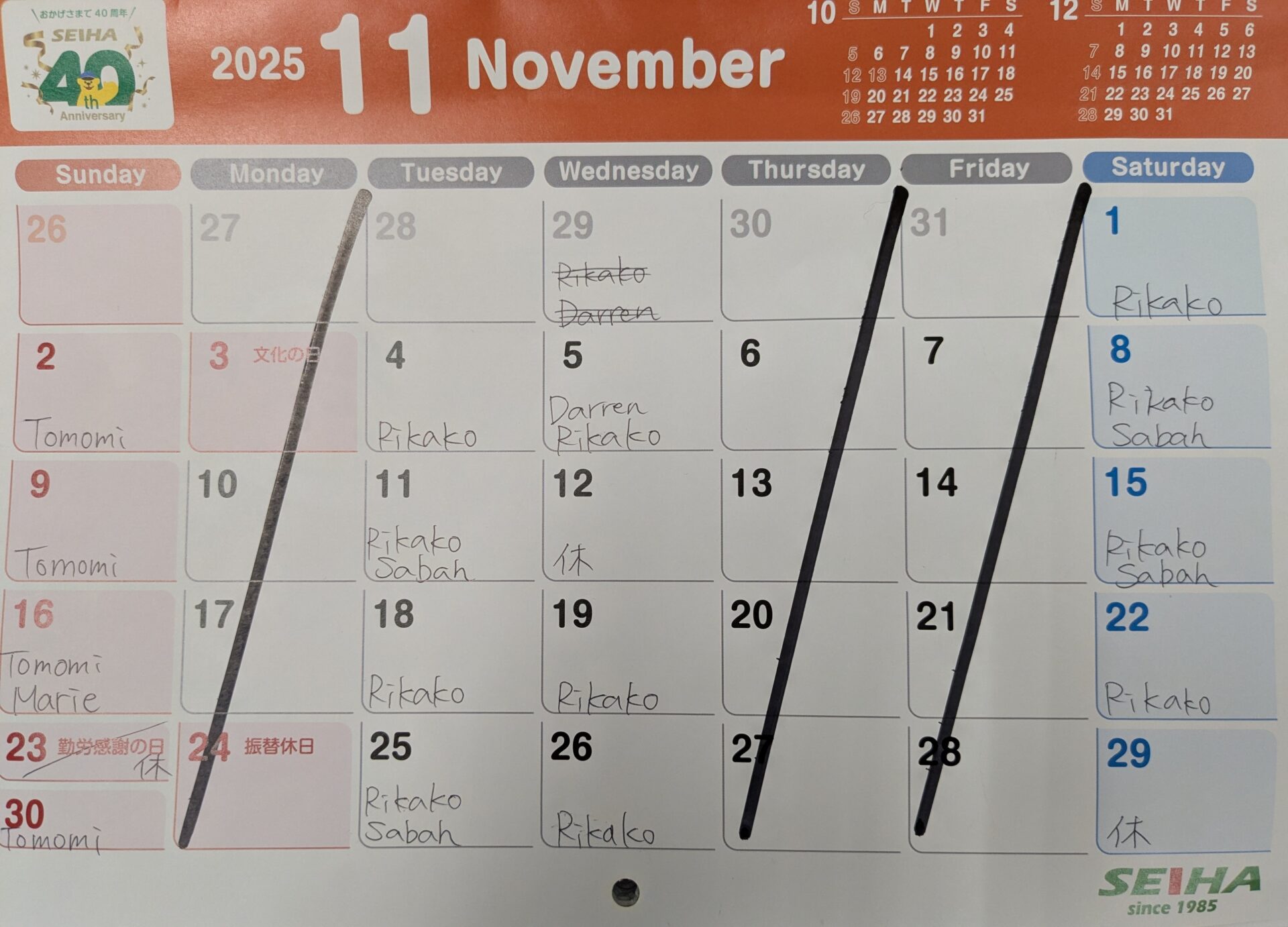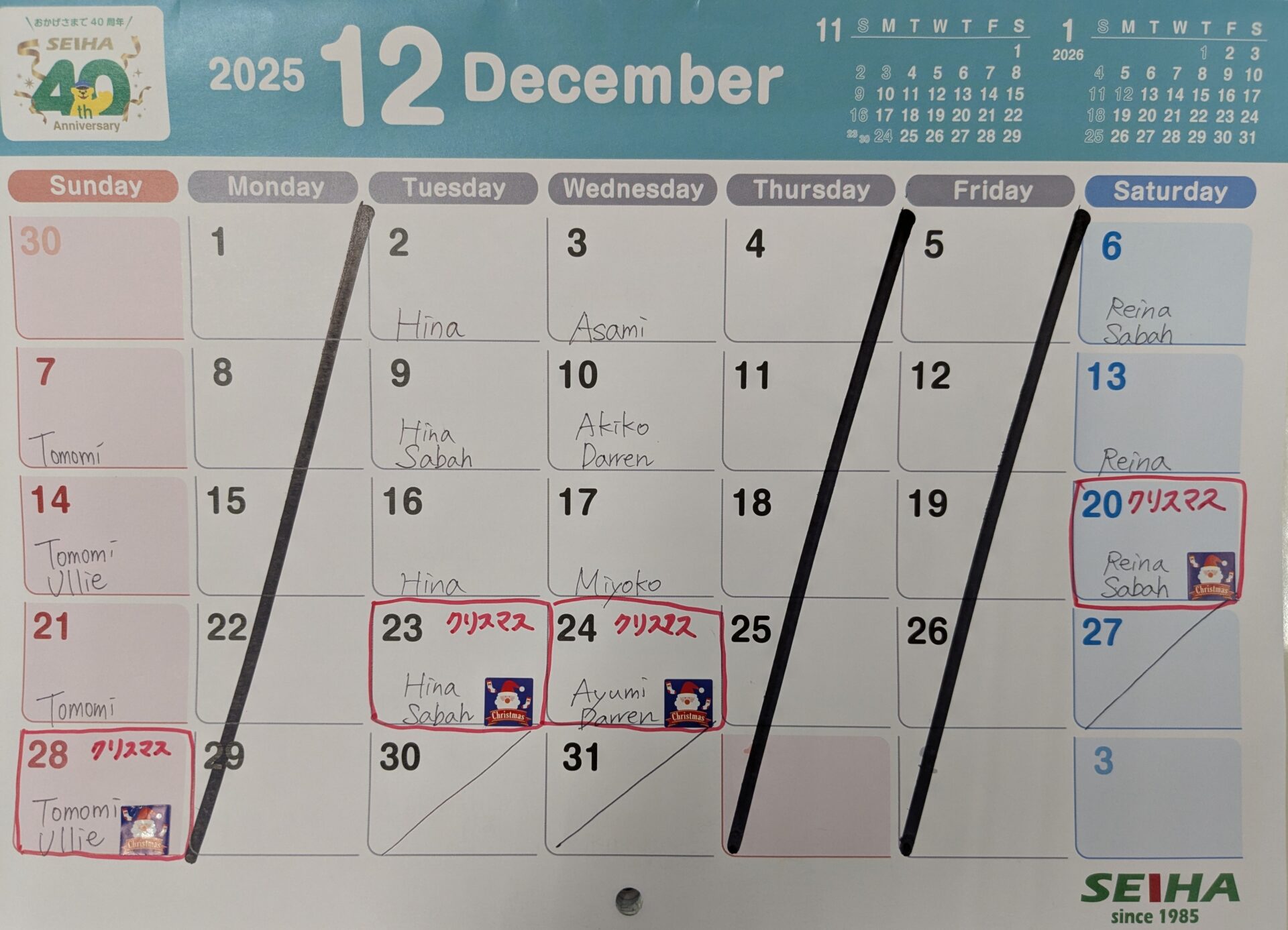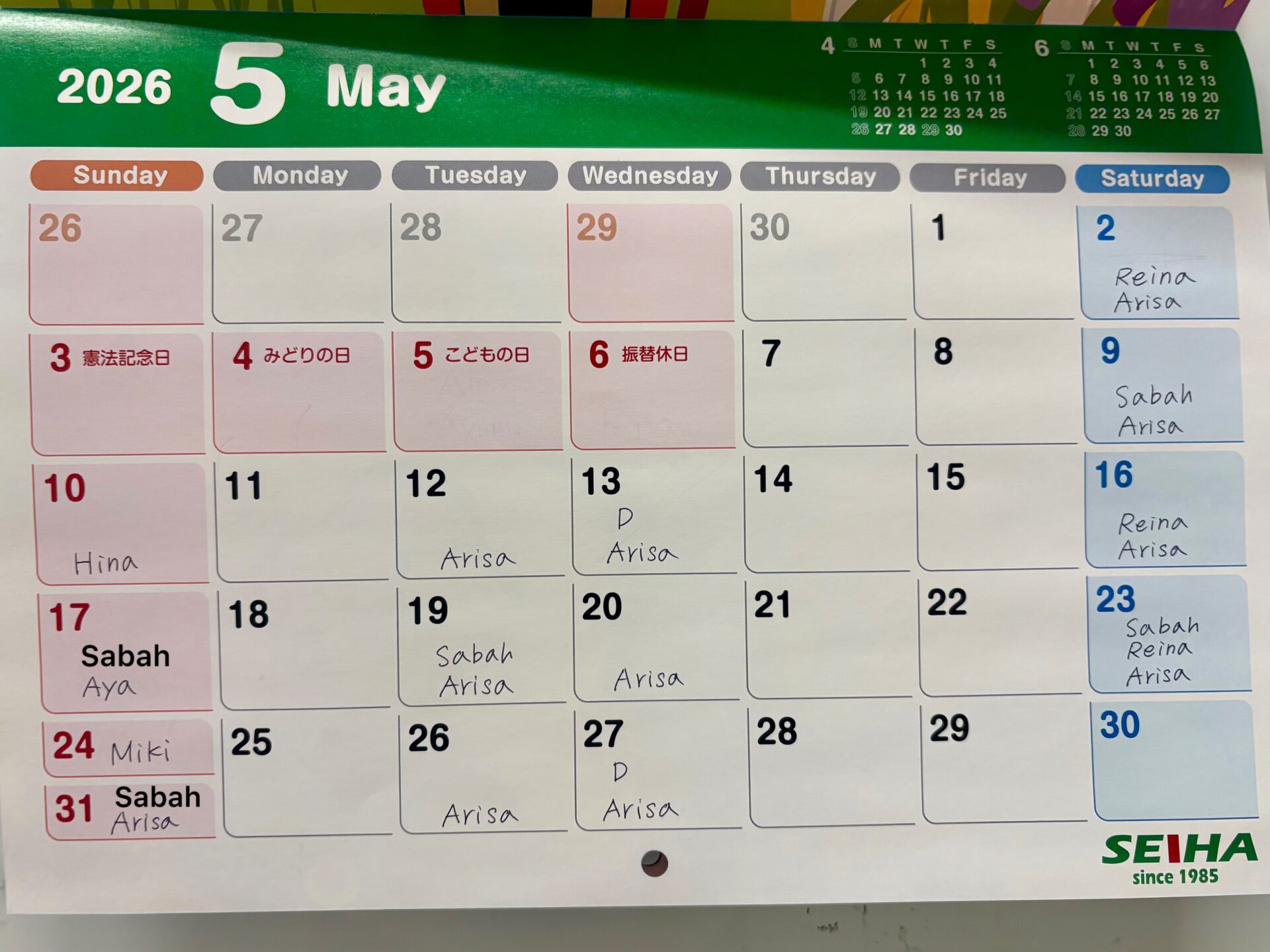 | 月曜日 | 火曜日 | 水曜日 | 木曜日 | 金曜日 | 土曜日 | 日曜日 |