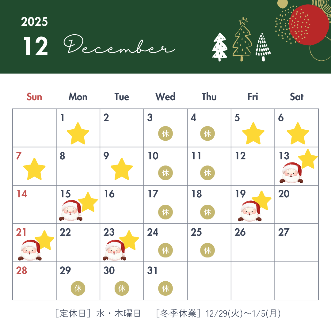 | 月曜日 | 火曜日 | 水曜日 | 木曜日 | 金曜日 | 土曜日 | 日曜日 |