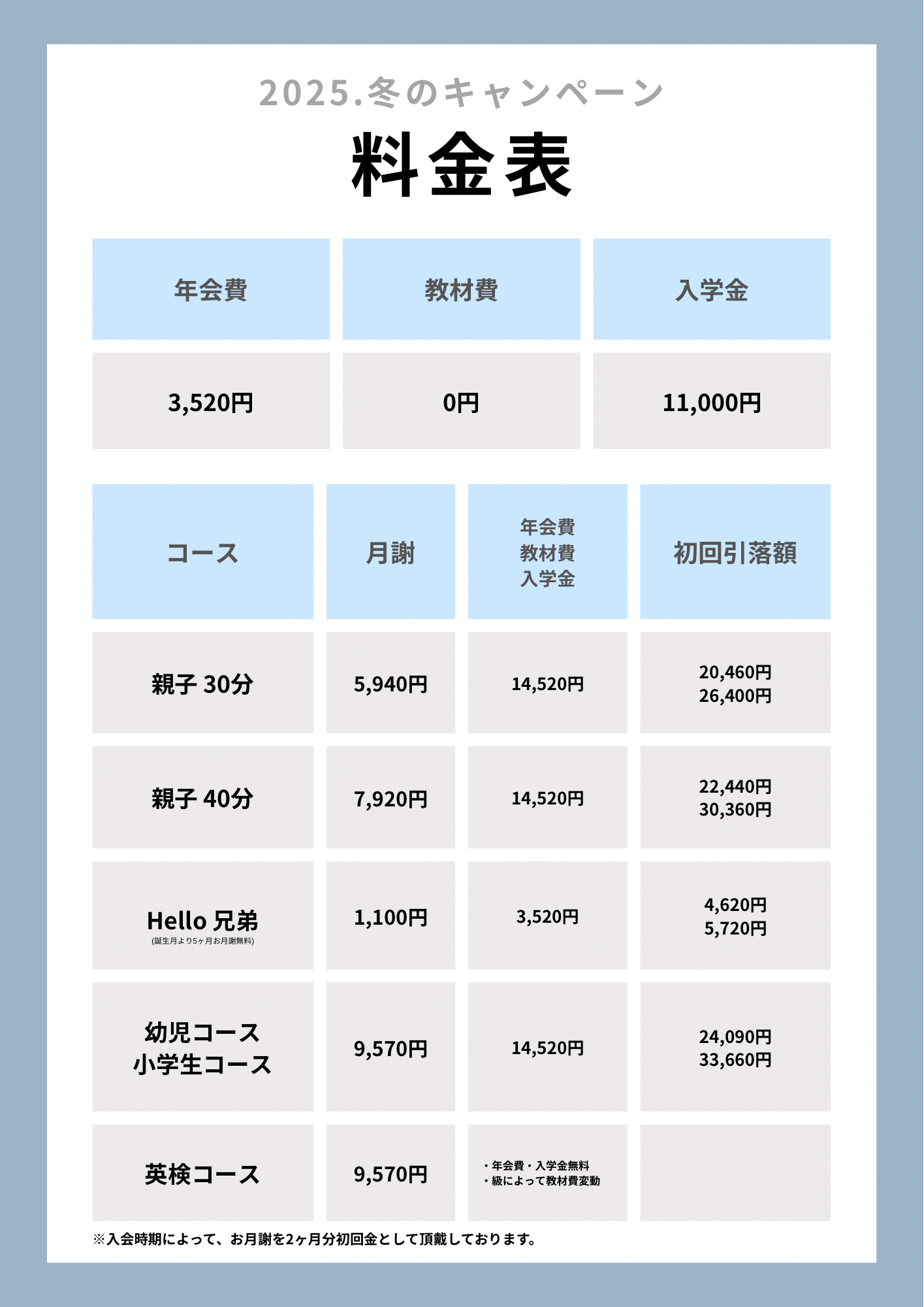 ※教室により内容が異なる場合がございます。詳しくは各教室、またはフリーダイヤルまでお問い合わせください。