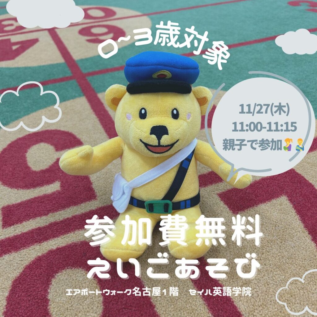 0〜3歳を対象に毎月一回無料の英語あそびを実施しています。