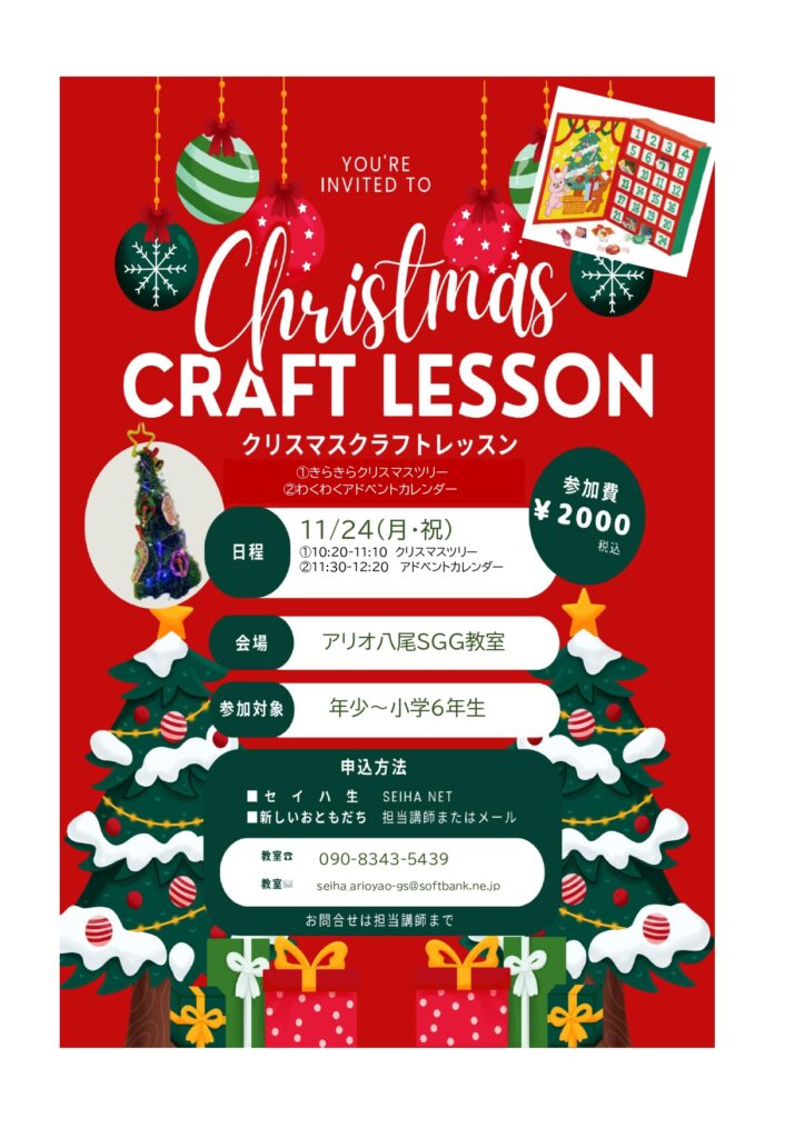 イオンタウン東大阪近隣のアリオ八尾SGG教室にて、今年はクリスマスクラフトイベントを開催します✨