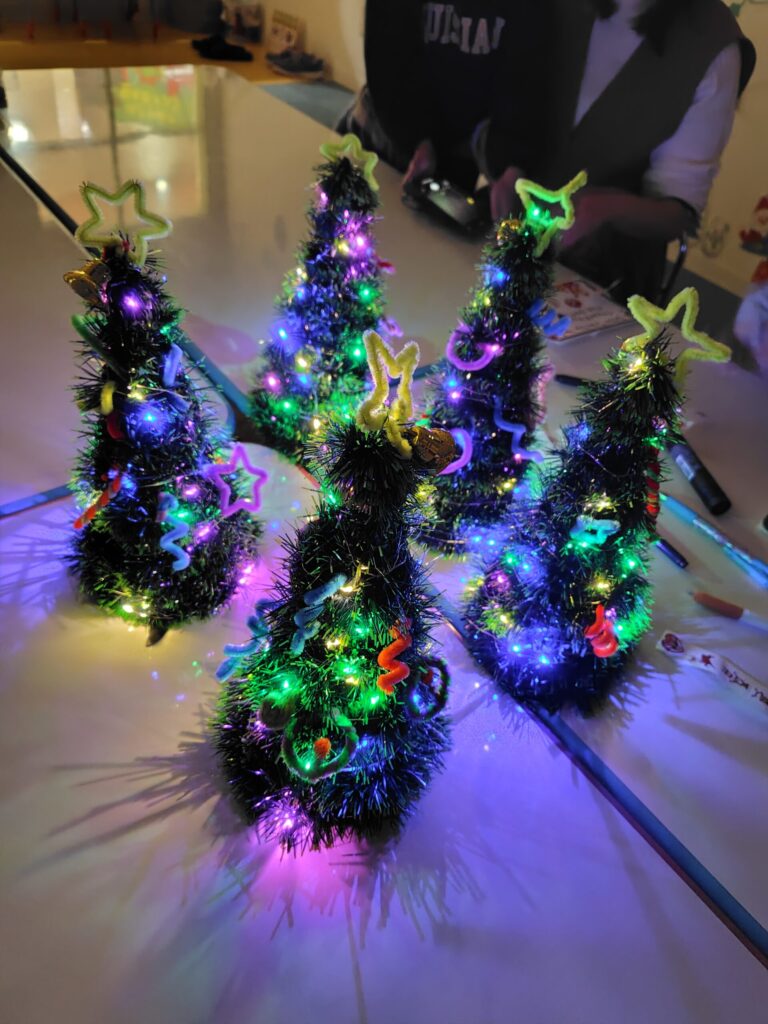 クリスマスクラフトのお誘いです!大好評につき、きらきら光るクリスマスツリーが再登場しました!