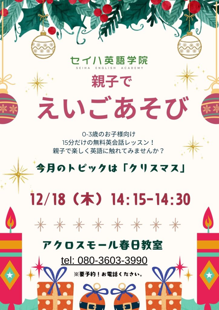 セイハ英語学院では、0〜3歳のお子様と保護者の方を対象に、無料の英会話ミニレッスンを開催します!