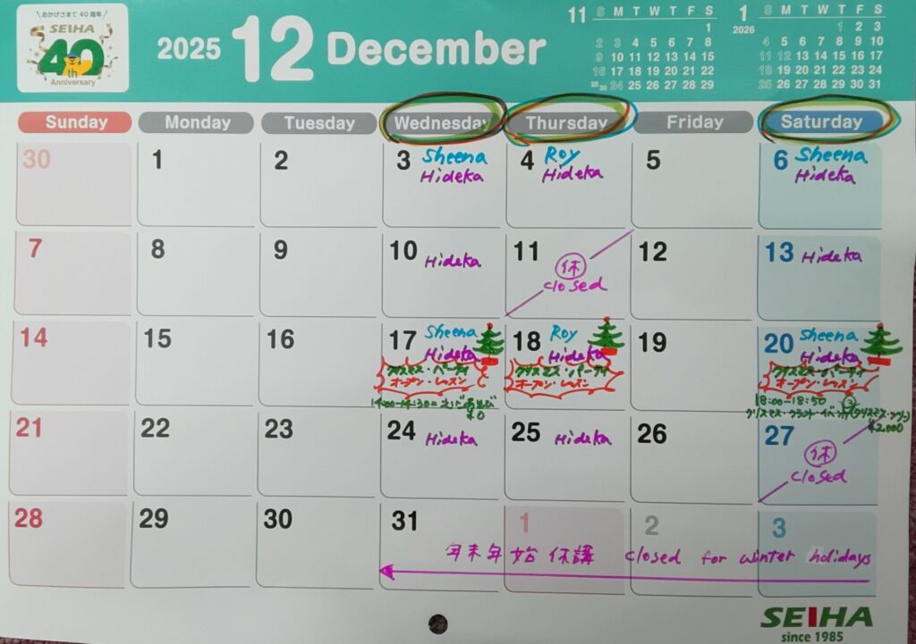 12月スケジュール