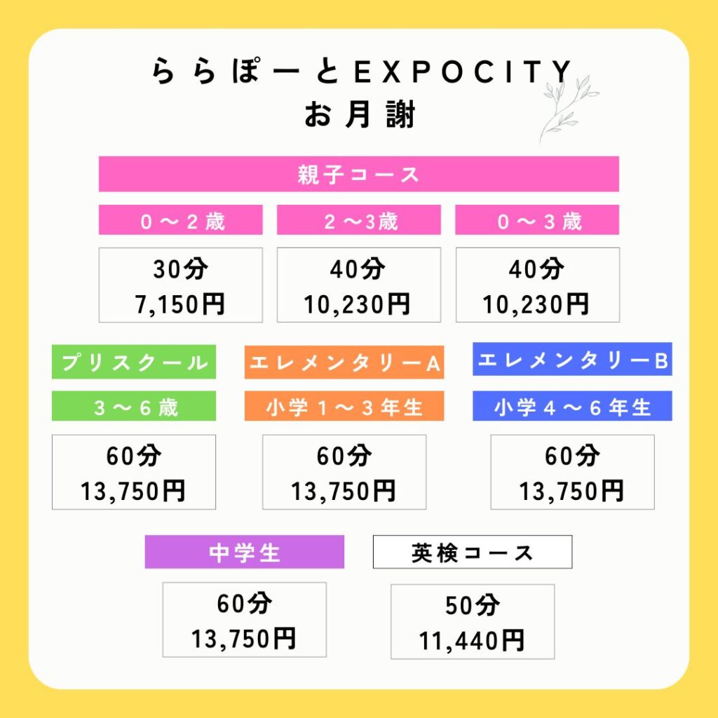 ららぽーとEXPOCITY教室 お月謝