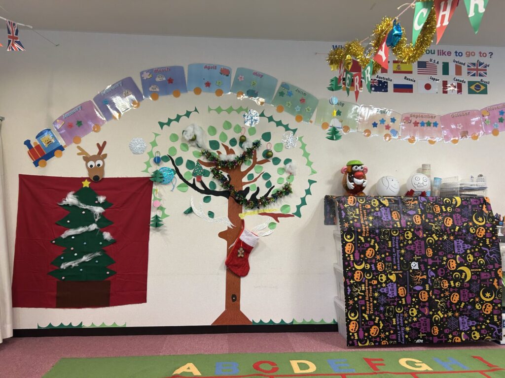 教室内を、お子さまが安心して楽しめるやさしいクリスマス仕様に模様替えしました。