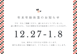 🎍年末年始休業のお知らせ🎍