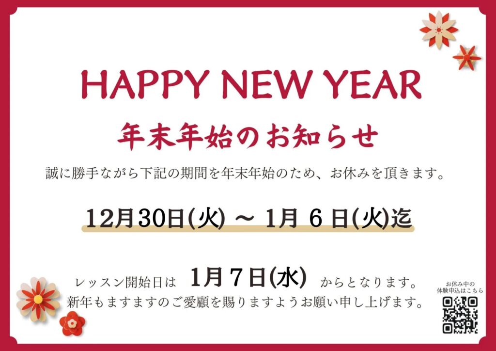 ※休業期間中の体験レッスン申込やお問い合わせへの対応は