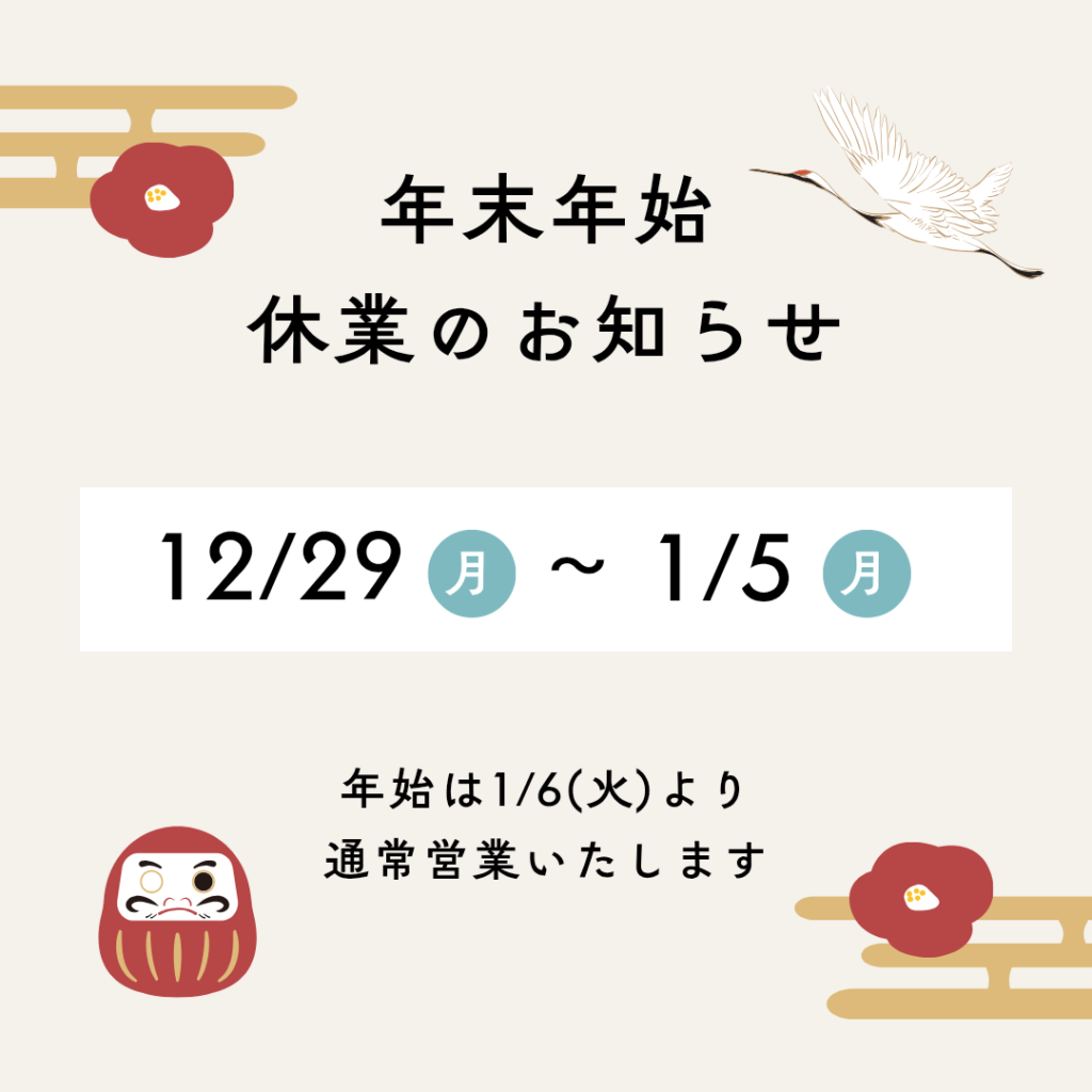 12/29〜1/5まで年末年始休業をいただきます。