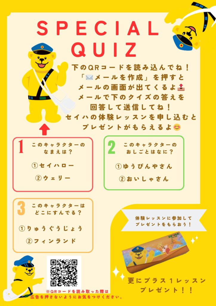 お問い合わせ:08046465035niigataminami@seiha.com※冬季休校後に折り返し返信いたします。