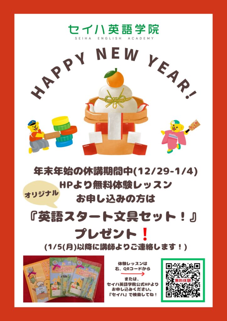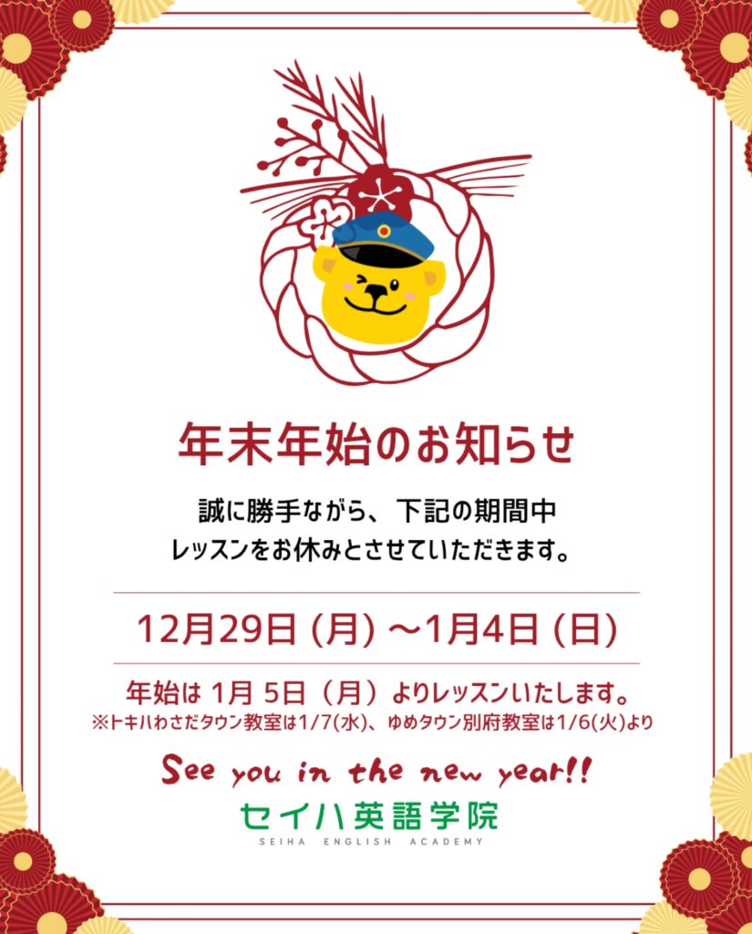 12月29日~1月5日期間中、レッスンをお休みとさせていただきます。