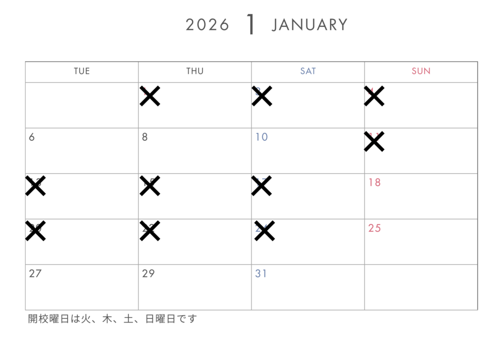 1月はSeiha English Test、面談があるため体験レッスンのお申込み日程が少なくなっています😓
