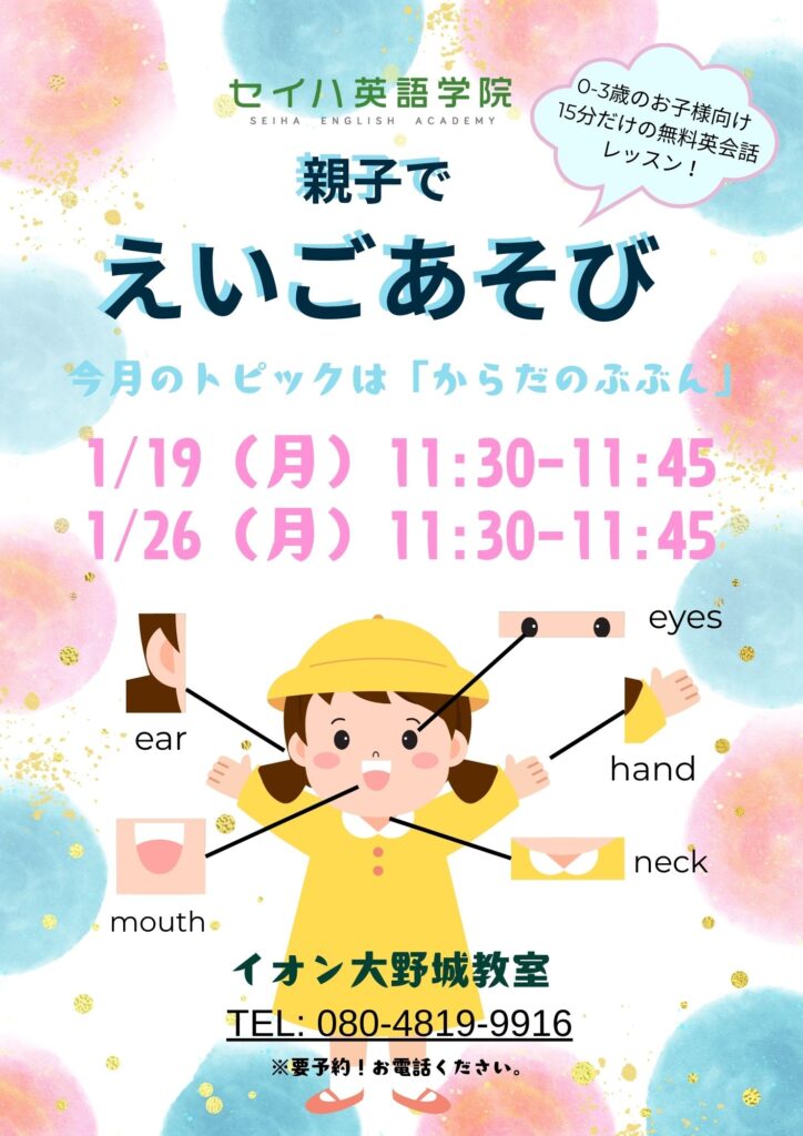 セイハ英語学院では、0〜3歳のお子様と保護者の方を対象に、無料の英会話ミニレッスンを開催します!