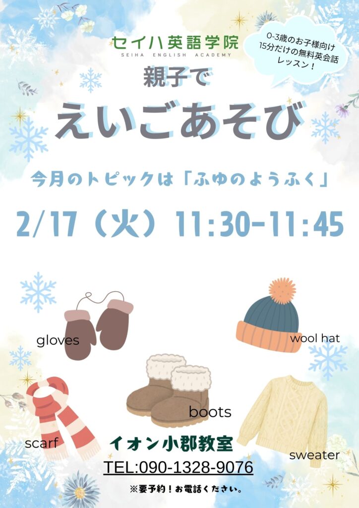 セイハ英語学院では0〜3歳のお子様と保護者の方を対象に、無料の英会話ミニレッスンを毎月開催しております!