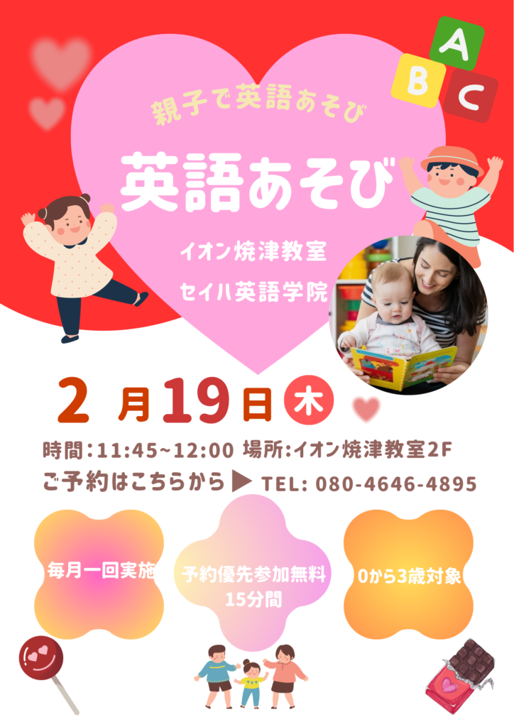 イオン焼津教室です!2月の英語あそびは2/19(木曜日)の11:45〜12:00に行います♡