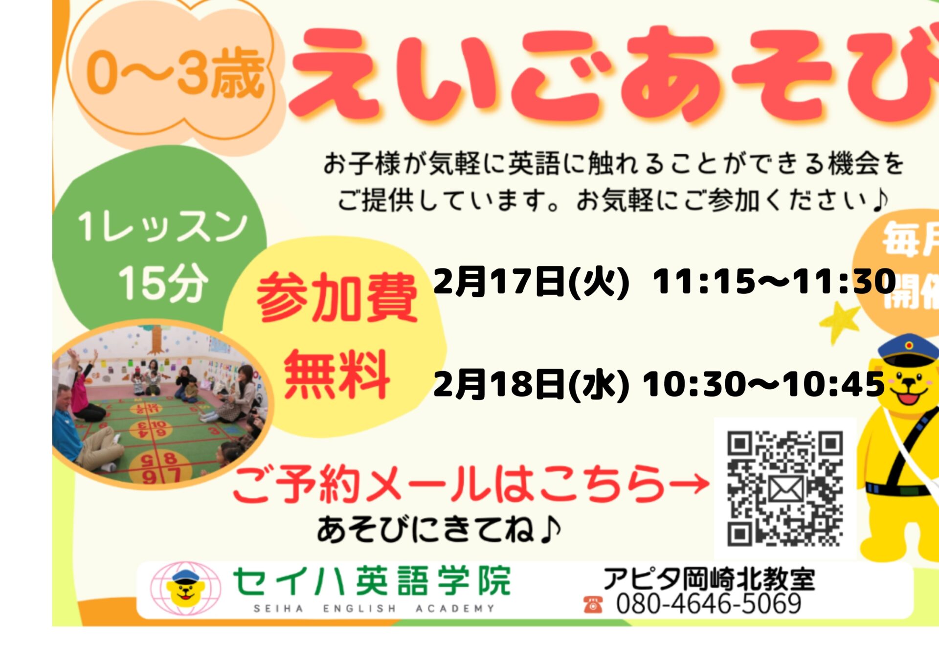次回英語あそびのご案内です!英語あそびは、教室やショッピングセンターの広場で開催するため、天気や気温を気にせず、室内でご参加いただけます♪ぜひ歌やゲームを織り交ぜながら 、「冬の洋服」に関する単語や数字、アルファベットに触れて楽しみませんか?15分のみなのでお気軽にご参加いただけ、外国人講師ともふれあえます☆お散歩やお買い物ついでに、ぜひお立ち寄りください♪講師一同お待ちしております(^^)