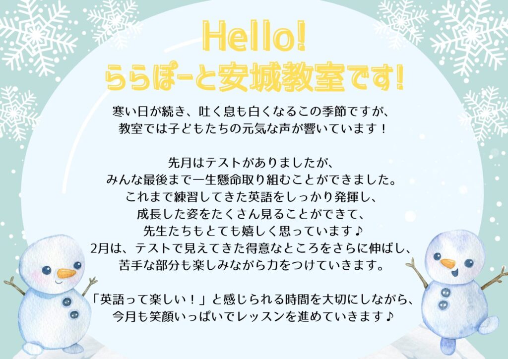 2月の教室だよりです♪