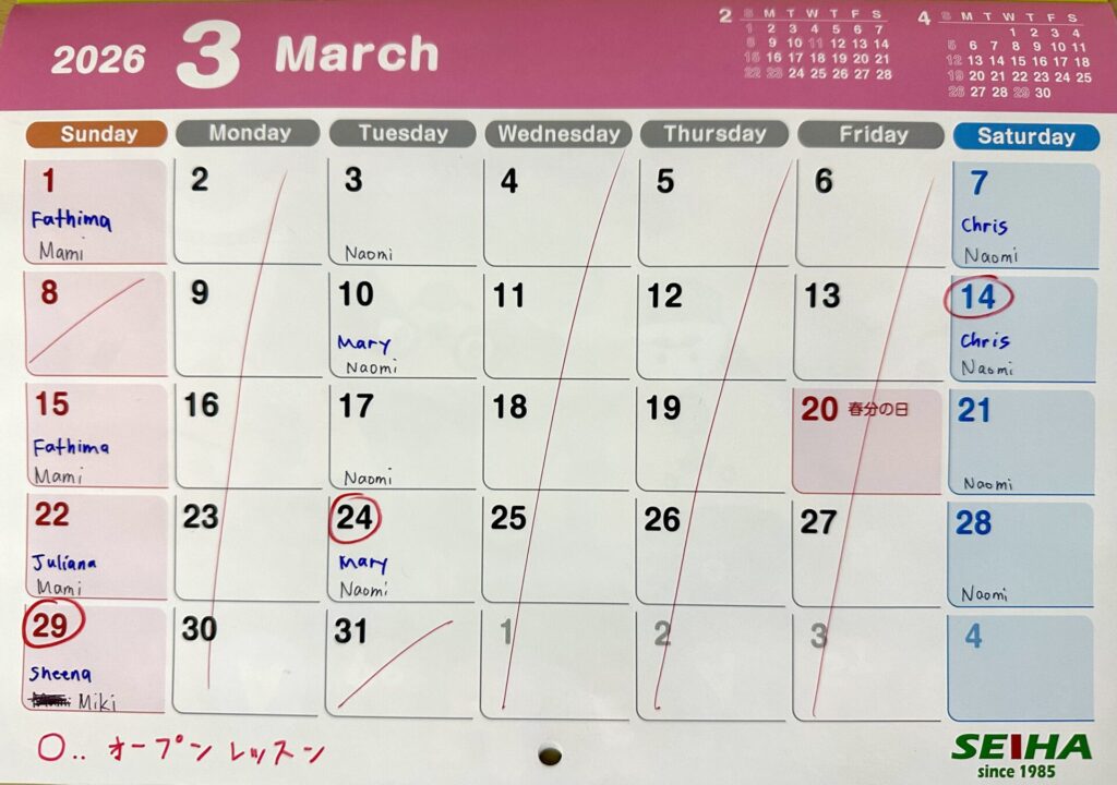 3月スケジュールは上記を予定しております。