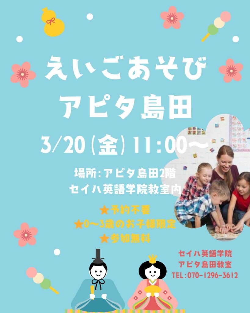 3月の英語あそびは3/20(金)11:00〜です!