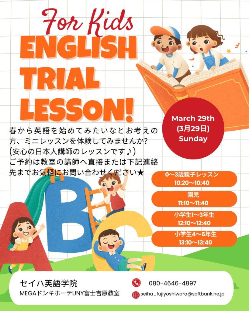 この春英会話を始めようかなとお考えのかた、ぜひ体験会にご参加下さい。