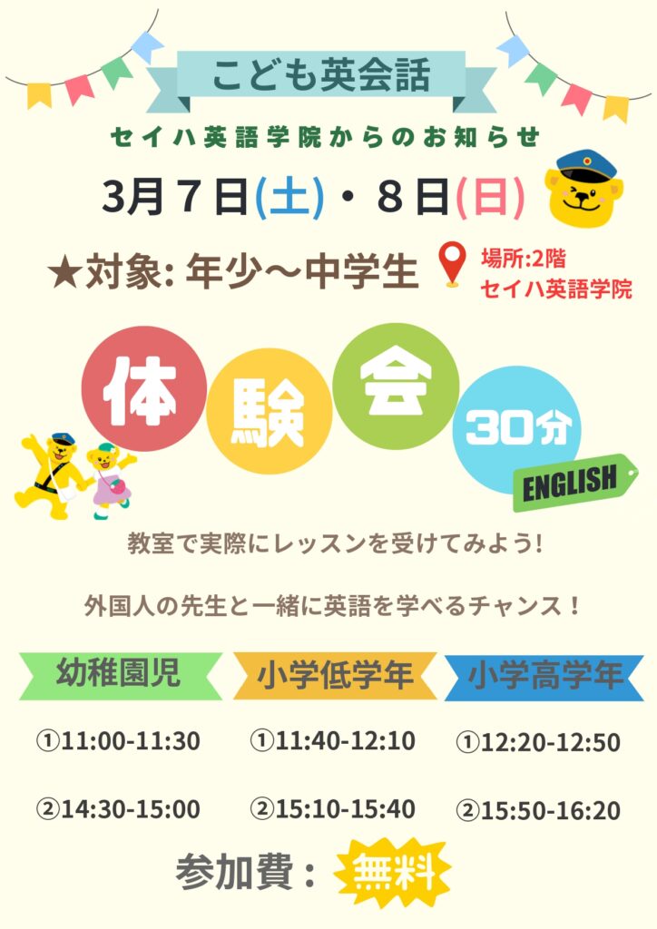 教室にて体験会を行います。参加は無料です。是非お気軽にお越しください★