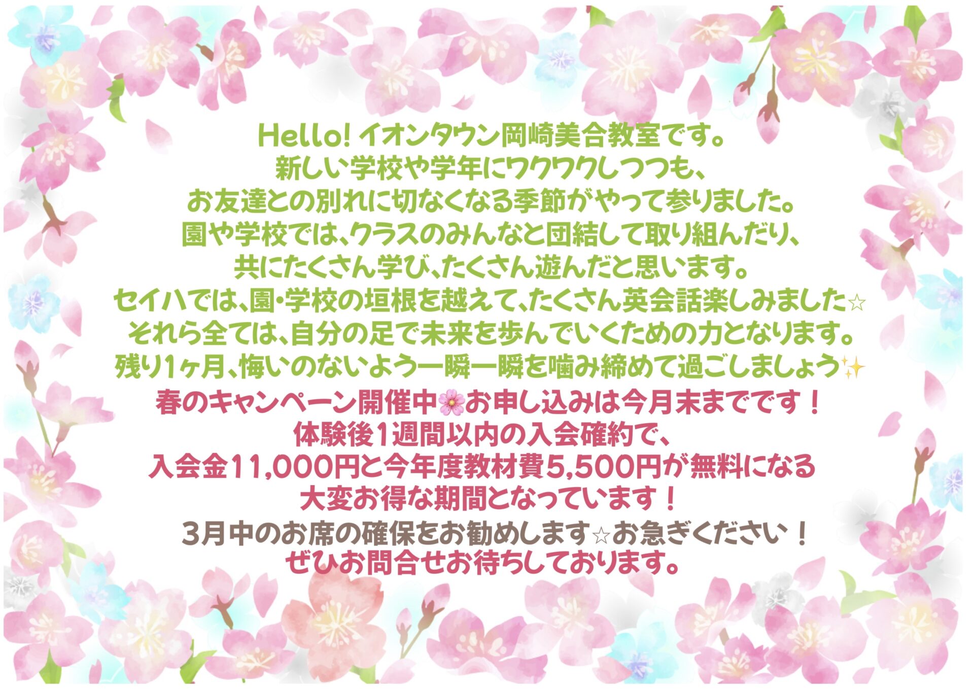 春のキャンペーンの受付中!お申込みは今月までです!!