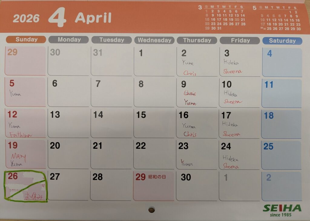 4月の開校日とカレンダー