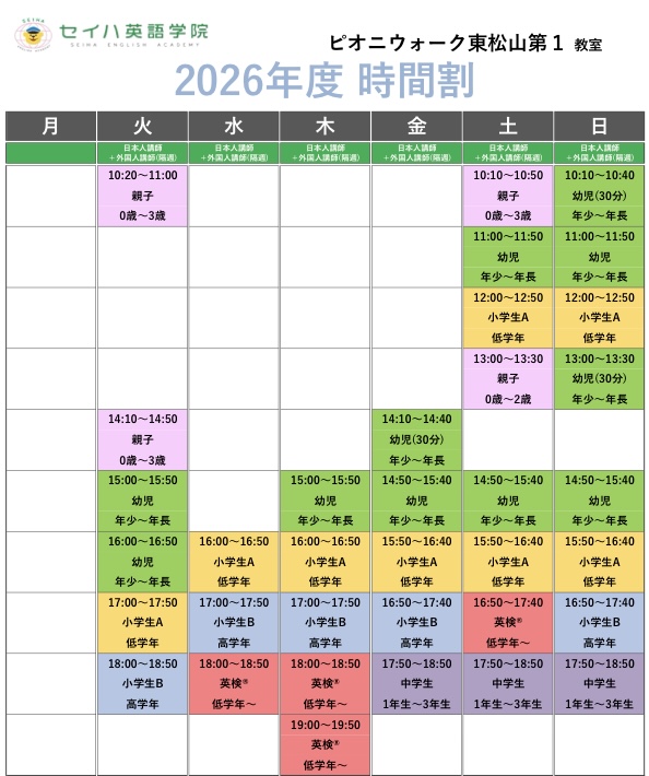 2026年4月より時間割が新しくなります✨